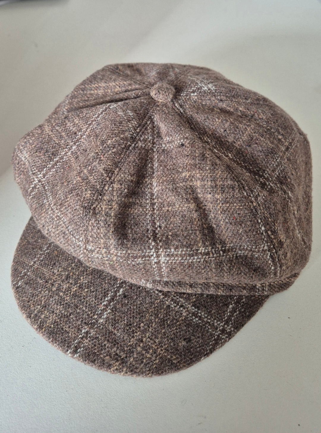 Newsboy Cap Herringbone Button Ascot in beige