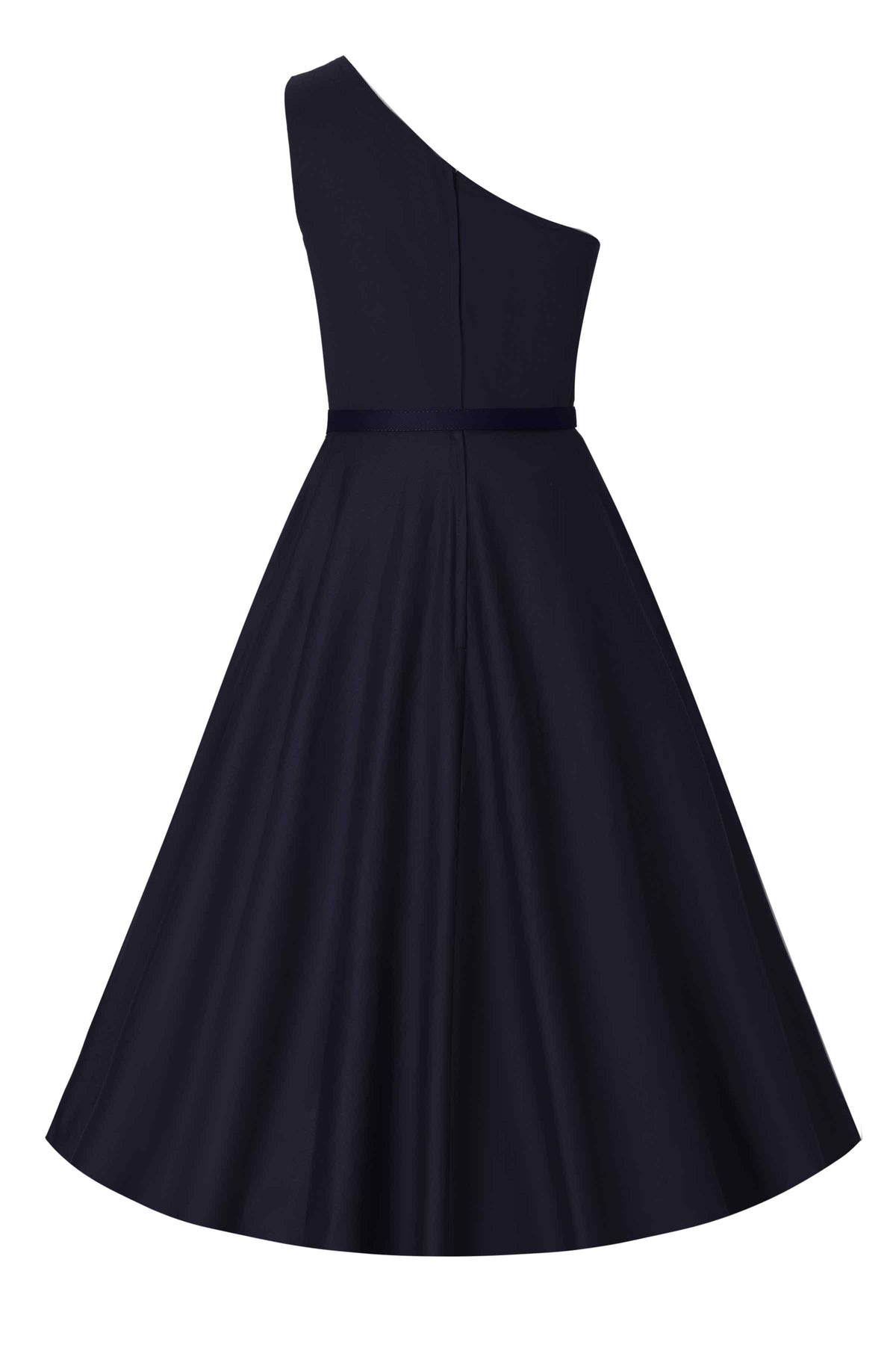 Entdecken Sie zeitlose Eleganz mit diesem schwarzen One-Shoulder-Swingkleid. Die schmeichelnde A-Linien-Silhouette, das figurbetonte Oberteil und der passende Taillengürtel betonen deine Figur und sorgen für Komfort. Der praktische Reißverschluss auf der Rückseite und die versteckten Seitentaschen sorgen für zusätzlichen Komfort. Perfekt für formelle Anlässe, Hochzeiten oder einen eleganten Vintage-Look. Ein Must-have für jede Boutique-Kollektion!