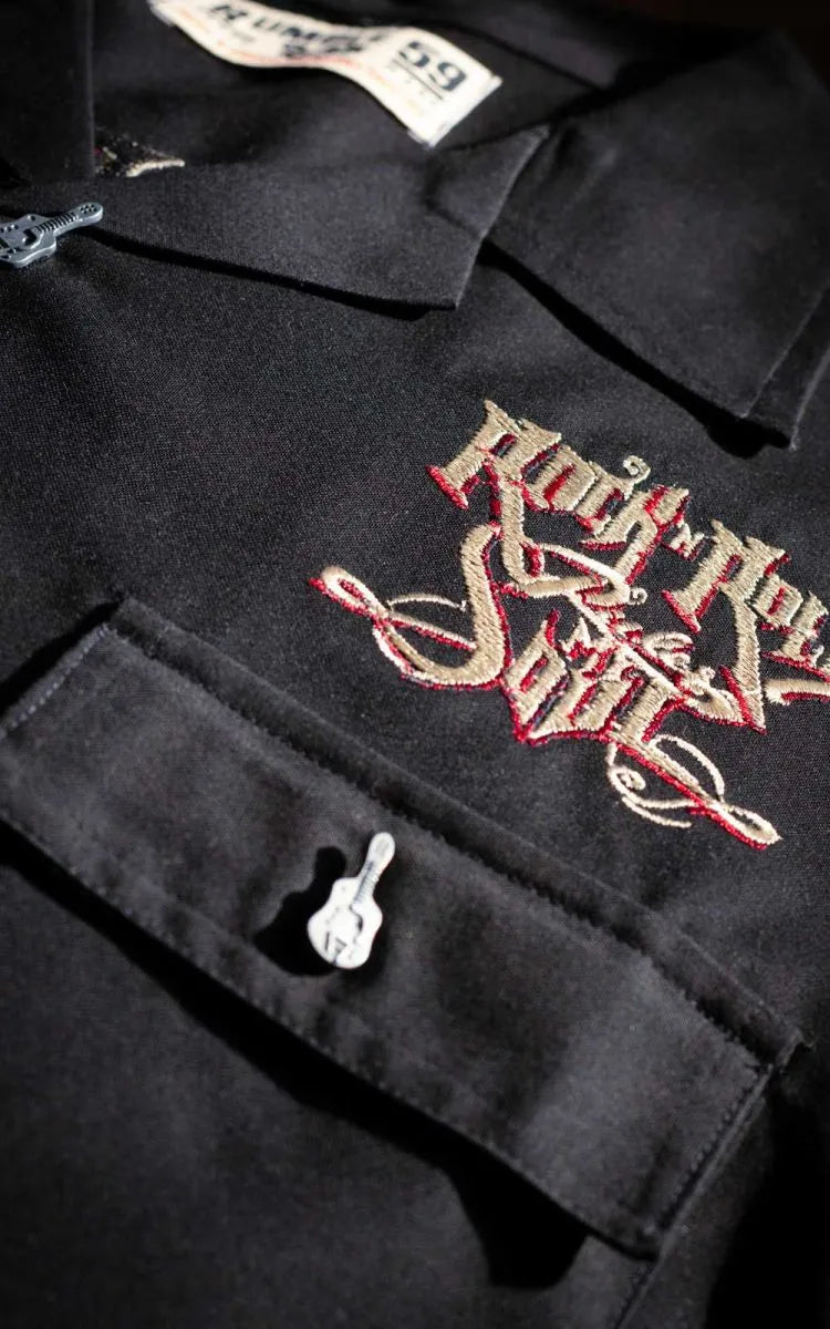 Das Workerhemd von Rumble59 hat zwei große, aufgesetzte Brusttaschen mit Patten. Der Rücken überzeugt durch eine auffällige und hochwertige Stickerei, die durch das gestickte Lettering über der linken Brusttasche ergänzt wird. Die tollen Metallknöpfe in Form einer Sechskantschraube mit eingeprägtem Logo runden das Hemd perfekt ab. Da kann die Arbeit oder der nächste Gig kommen - ein cooler Auftritt und ein lässiger Look sind mit diesem Hemd in jedem Fall garantiert!