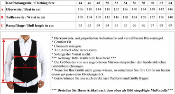 Modische Weste für ein klassisches Vintage Outfit. Die Weste von H.K. Mandel ist ein schönes Vintage inspiriertes Modestück in einem tollen Viskosegemisch. Sie hat einen tollen Schnitt mit großem Ausschnitt, spitzem Abschluss und gleichfarbigem Taftrücken. 2 Taschen und eine Brusttasche mit eingearbeitetem gleichfarbig gemusterten Einstecktuch dürfen auch bei diesem Klassiker nicht fehlen. Ein verstellbarer Riegel am Rücken sorgt für eine perfekte Passform und Sitz.