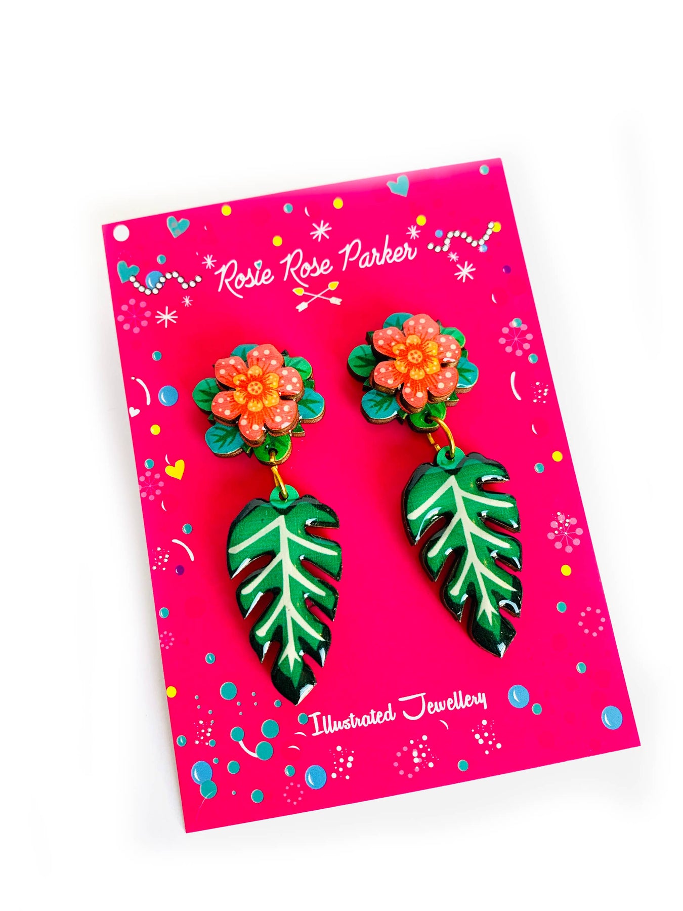 Tropische Blumenblatt-Ohrringe von Rosie Rose Parker