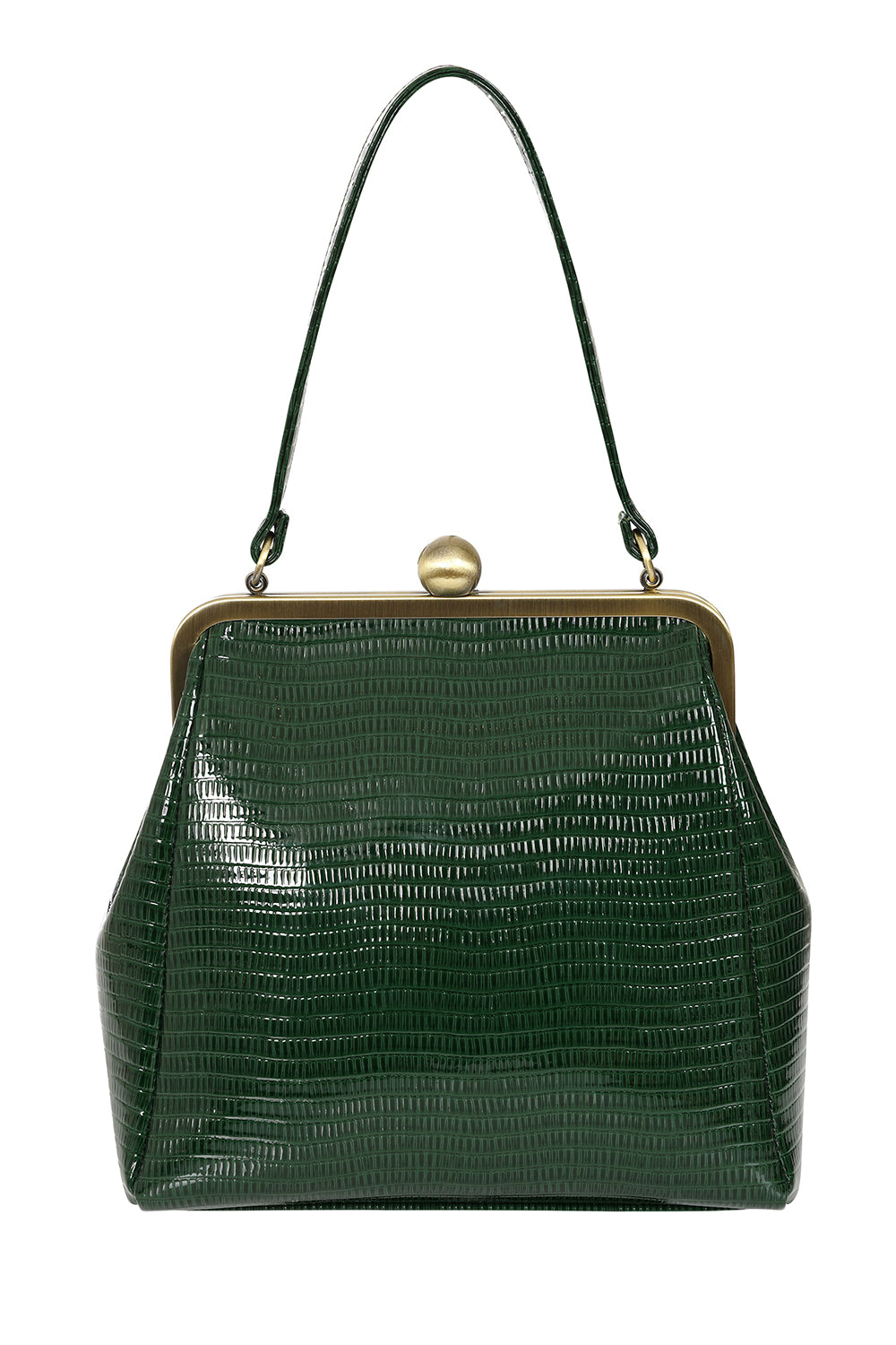 Die Banned Doris Handtasche spiegelt mit ihrem strukturierten Verschlussdesign die Eleganz der 1940er Jahre wider. Zeitlos und raffiniert bietet diese Tasche im Schlangenleder-Look Stil und Funktionalität zugleich. Der abnehmbare Schultergurt ermöglicht den einfachen Wechsel von einer klassischen Clutch zur freihändigen Umhängetasche. Perfekt für Vintage-Liebhaber.