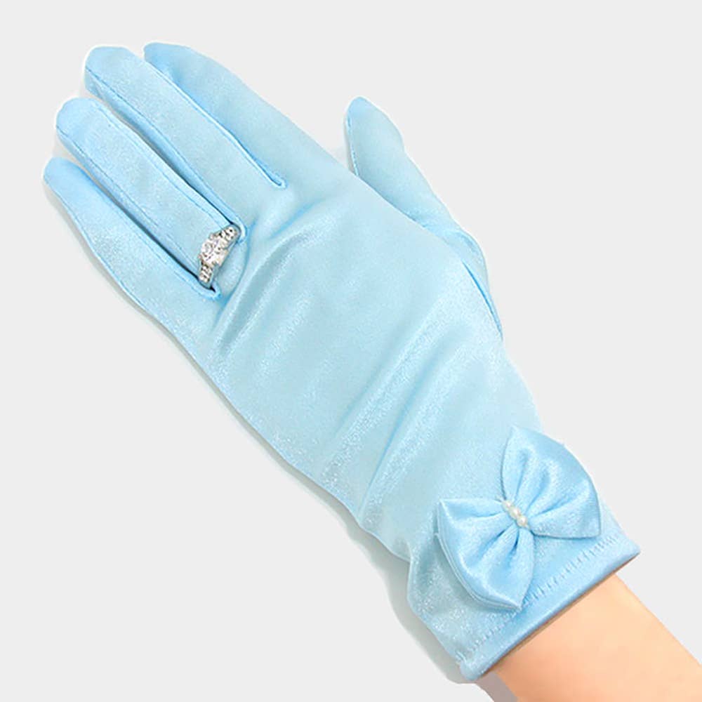 Elegante kurze Satin-Handschuhe mit Schleife in hellblau