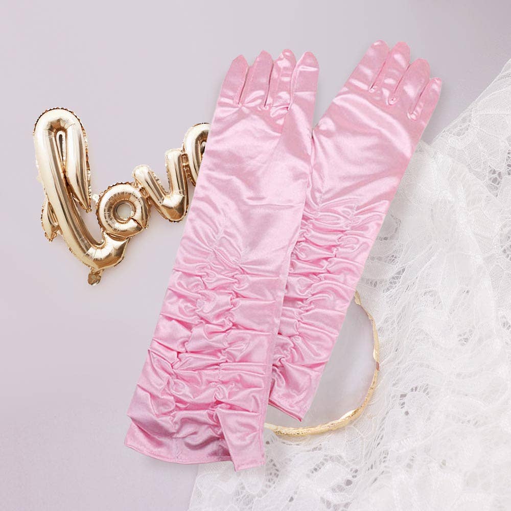 Lange geraffte Satin-Handschuhe rosa