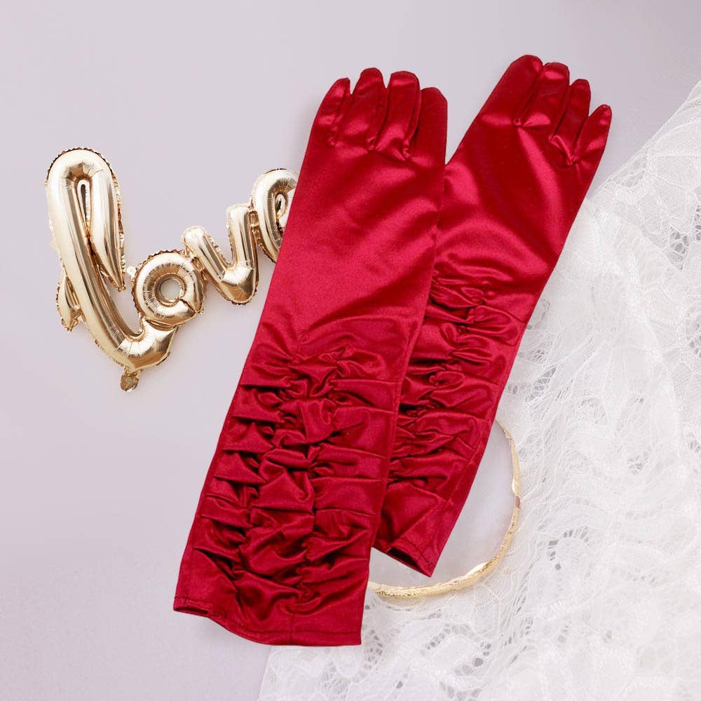 Lange geraffte Satin-Handschuhe dunkelrot